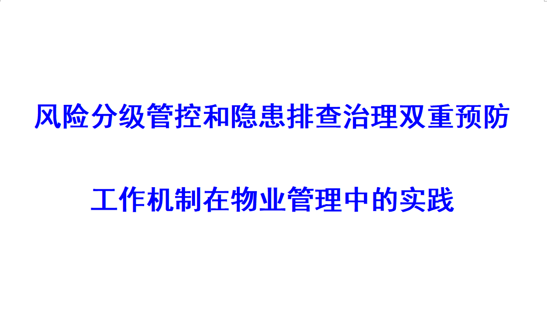 • 風(fēng)險(xiǎn)分級管控和隱患排查治理雙重預(yù)防工作機(jī)制在物業(yè)管理中的實(shí)踐 [2021-01-22]